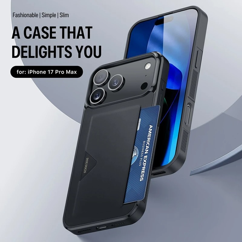 ✅ پوشش ضد‌اثر‌انگشت باعث می‌شود ظاهر قاب همیشه تمیز و براق باقی بماند., ✅ سطح قاب دارای طرح الماسی و پوشش ضدلغزش است که از لیز خوردن گوشی جلوگیری کرده و حس لمس راحت و مطمئنی را ایجاد می‌کند., ✅ طراحی هوشمندانه این قاب، فضای مخصوص قرار دادن کارت را به‌صورت یکپارچه در خود جای داده تا بتوانید کارت‌های بانکی یا حمل‌ونقل خود را همیشه در دسترس داشته باشید., ✅ قاب DUX DUCIS مدل Pocard Series برای iPhone ۱۷ Pro Max ترکیبی از طراحی شیک و عملکرد کاربردی است.